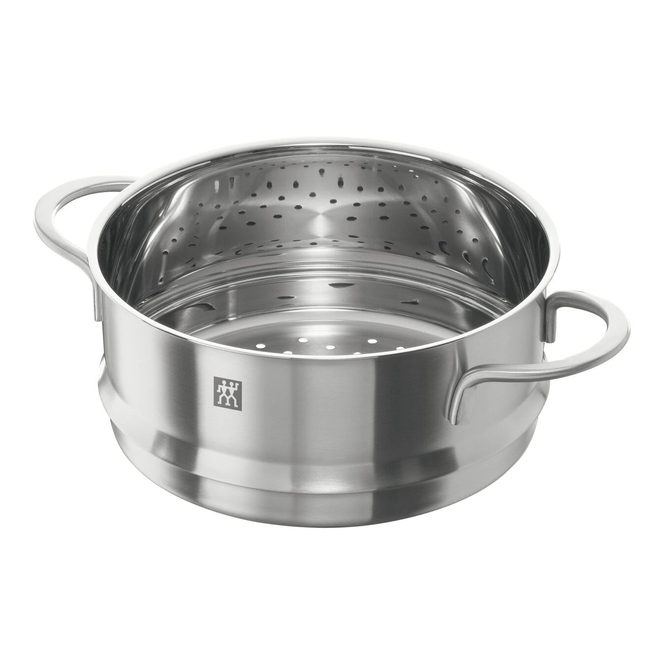 Dämpfeinsatz von ZWILLING aus der Serie TWIN® Nova Mit diesem hochwertigen Dämpfeinsatz der Serie TWIN® Nova von ZWILLING lassen sich Fisch und Gemüse auf schonende Weise mithilfe von Wasserdampf zubereiten. Mit seinem edlen, mattierten Design fügt er sich ideal in jeden Haushalt ein und wird zum praktischen Begleiter für die gesunde Küche. Der SIGMA Classic Boden des Dämpfeinsatzes mit einem Durchmesser von 20 cm verfügt über einen Kern aus Aluminium, sodass die Wärme beim Kochen optimal verteilt und die Hitze gespeichert wird. Dadurch ist ein energiesparendes Kochen auf niedriger Flamme möglich. Der dicht schließende Deckel und die hochwertige Dichtung aus Silikon sorgen dafür, dass kein Wasserdampf austreten kann und die Zutaten optimal gegart werden. Der innovative gefaltete Rand des Dämpfeinsatzes ermöglicht ein präzises Ausgießen ohne Nachtropfen. Dank der unempfindlichen Oberfläche ist der Einsatz sehr pflegeleicht und kann ohne Probleme in der Spülmaschine gereinigt werden. Mit diesem hochwertigen Produkt der Serie TWIN® Nova gelingen Ihnen gesunde Gerichte mit fettarm und aromaschonend gegartem Gemüse und Fisch.